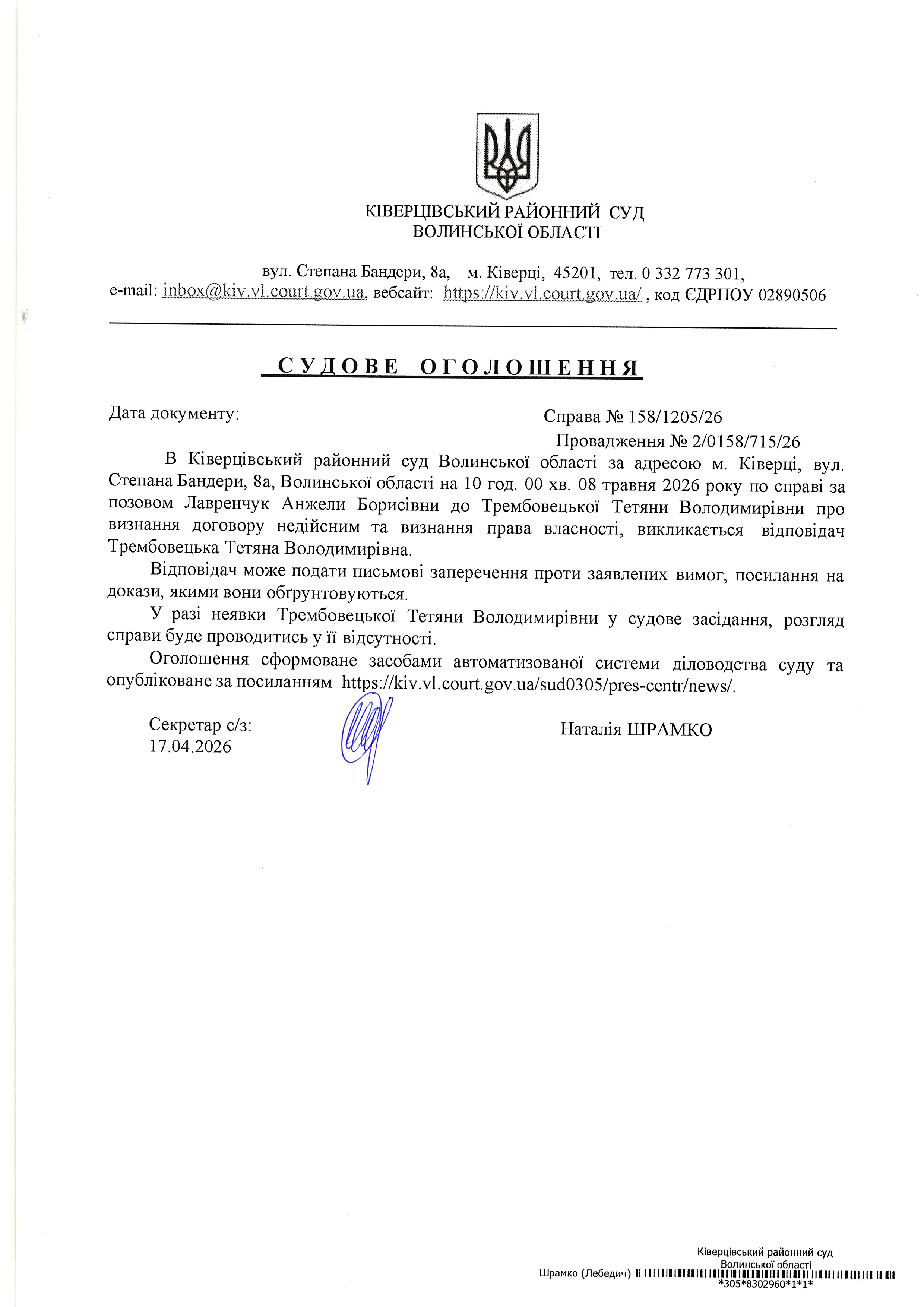 Оголошення про виклик Трембовецької Тетяни Володимирівни.jpg